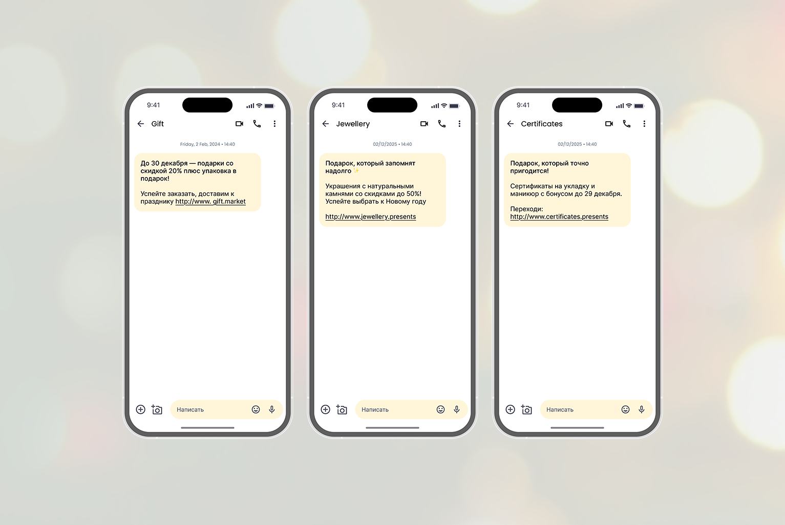 «С наступающим!», «Дарим скидку!», «Успей купить!».