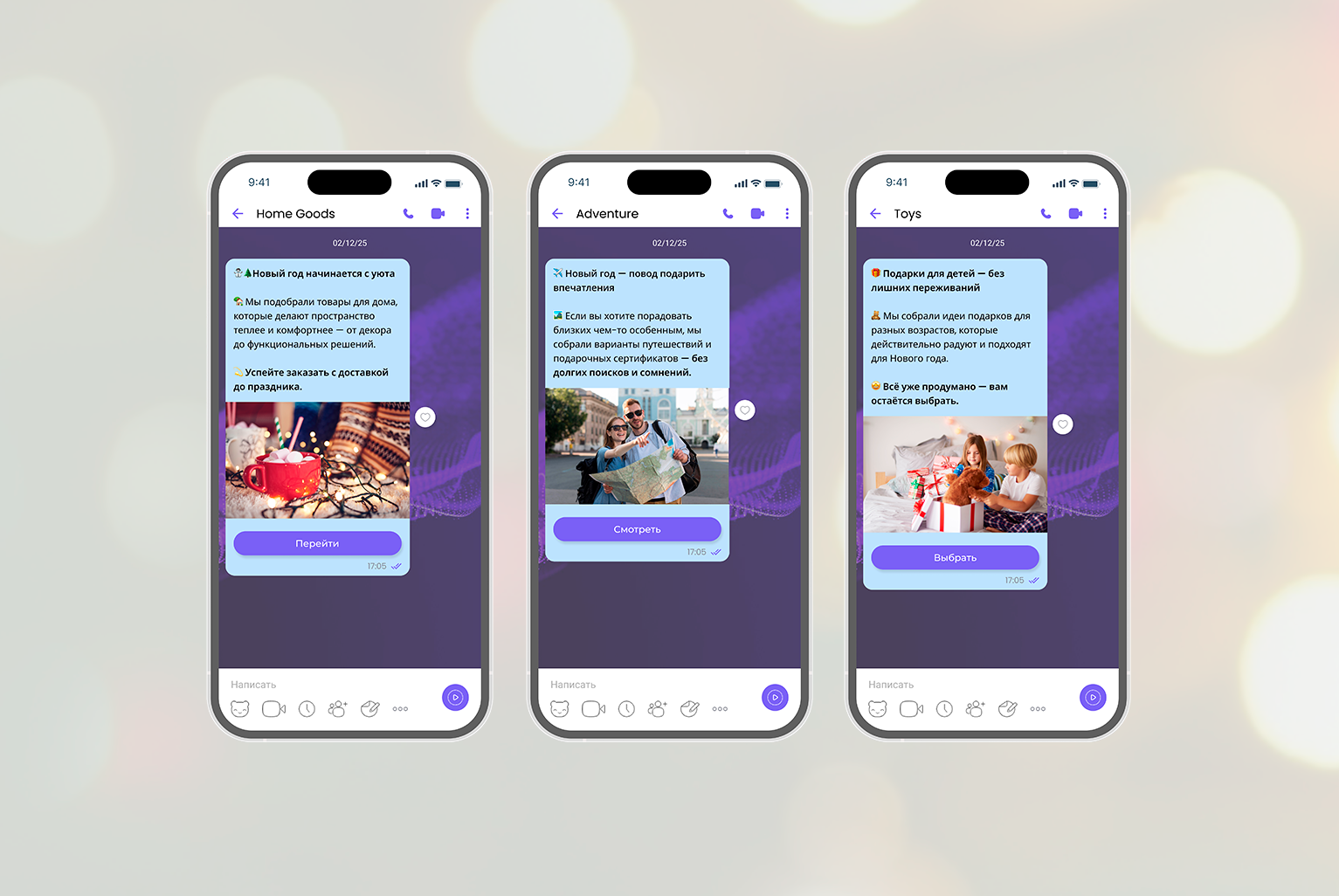 Viber — самый «человеческий» канал в предпраздничный период. Здесь клиент ожидает не сухое уведомление и не жёсткий призыв к покупке, а более тёплую и понятную коммуникацию. В отличие от SMS, в Viber уже не обязательно торопить — здесь гораздо важнее помочь с выбором и снять часть напряжения, связанного с дедлайнами и переизбытком вариантов.